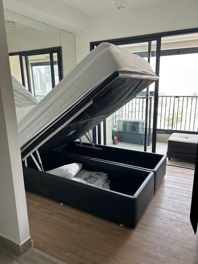 Este incrível studio de 24m² está localizado no 25º andar, oferecendo uma vista livre e panorâmica da cidade de São Paulo.